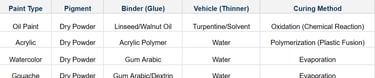# Pigments #Binders #Paint Chemistry #Archivability #Lightfastness #Gouache #Watercolor #Oil Painting #Acrylics #Art Preservation #Paint Mixing #Color Theory